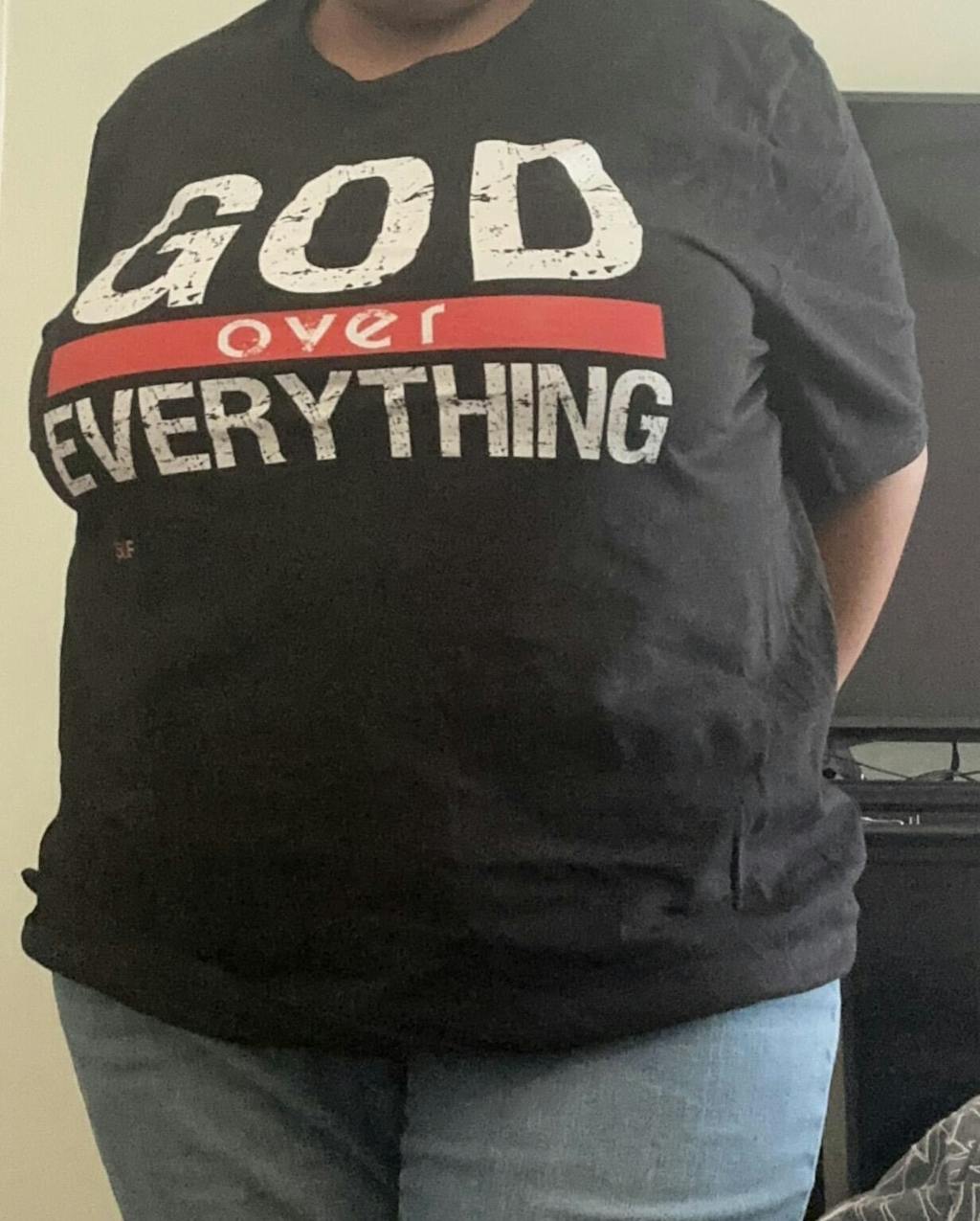 Proclaim to the world that your God is number 1 in your life! Or at least that is how you will feel while wearing this shirt.